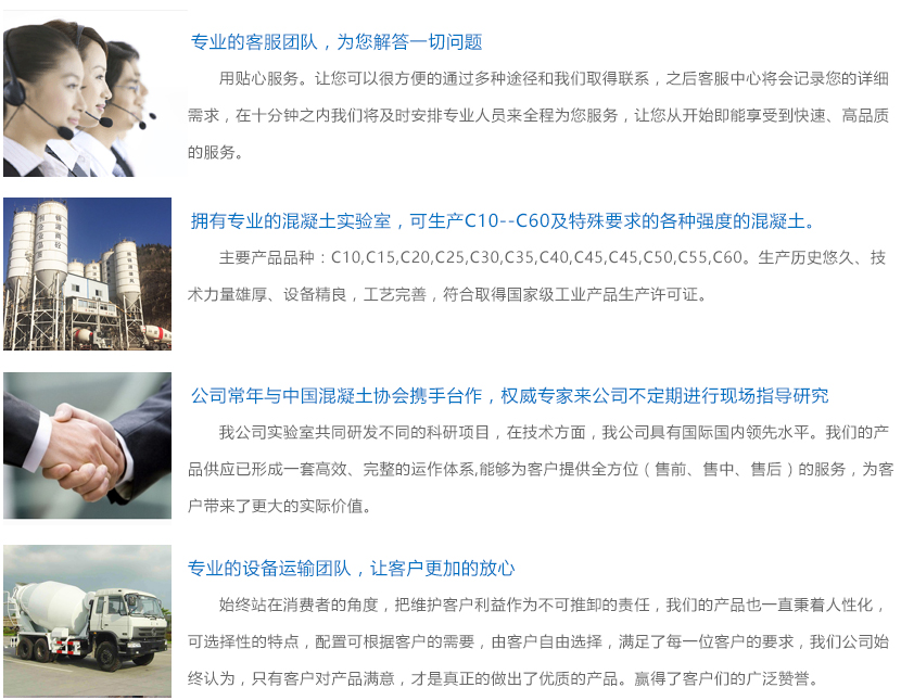 柳林縣錦源混凝土攪拌的工藝和先進技術水平贏得了許多榮譽,視質量為生命,奉用戶為上帝。用戶就是我們的一切。我們將會一直遵循對每一道工序負責、對每一臺產品負責、對每一位用戶負責的質量方針,竭誠為用戶服務。我們所做的一切將全力為您著想。我們深信:對您奉獻一顆真誠的心同樣會得到真誠的回報!